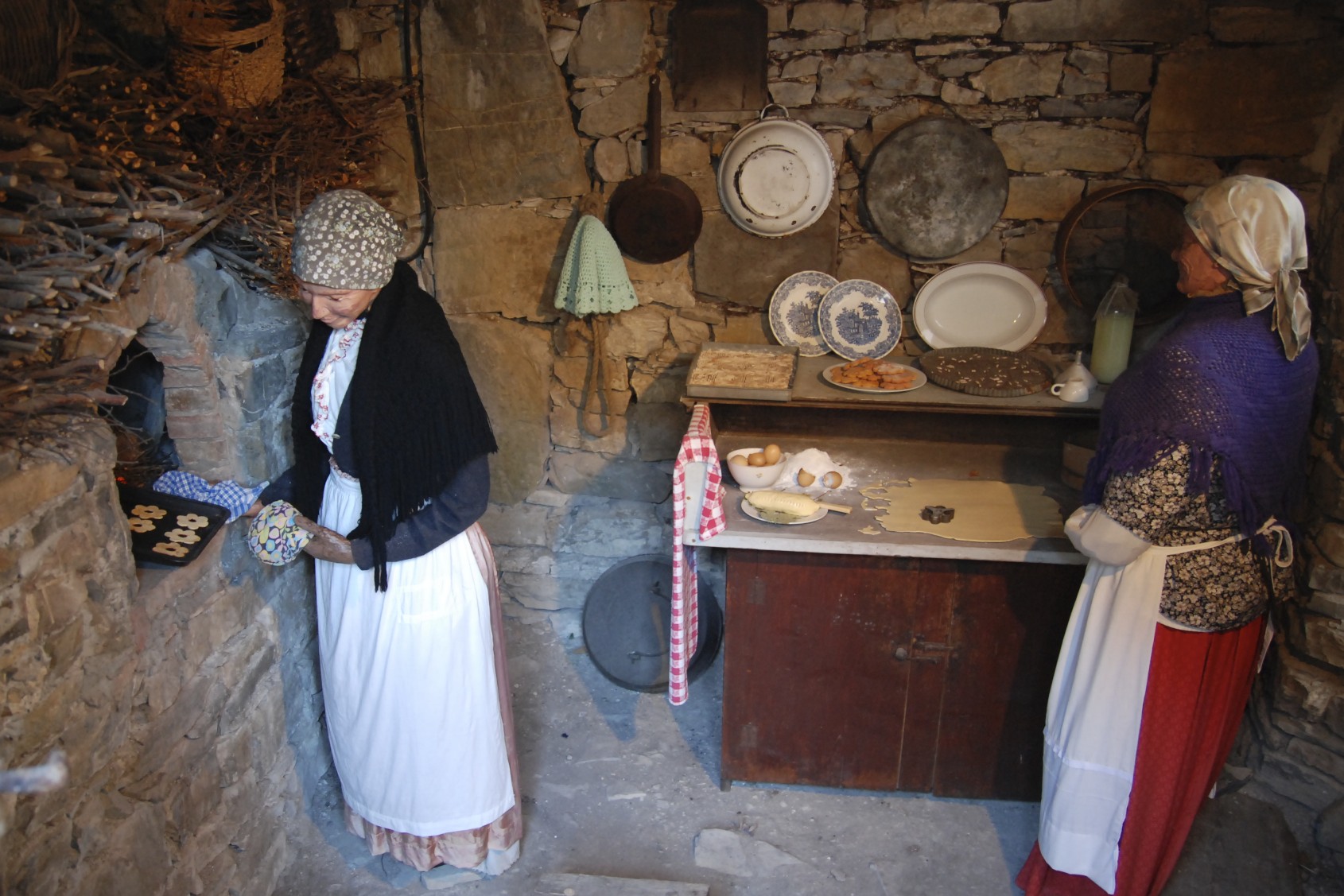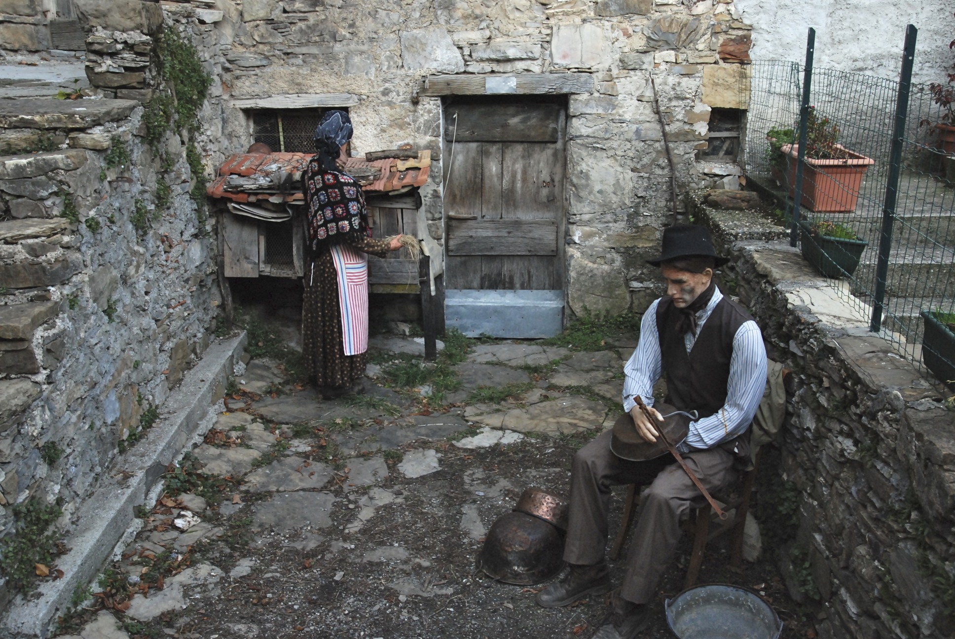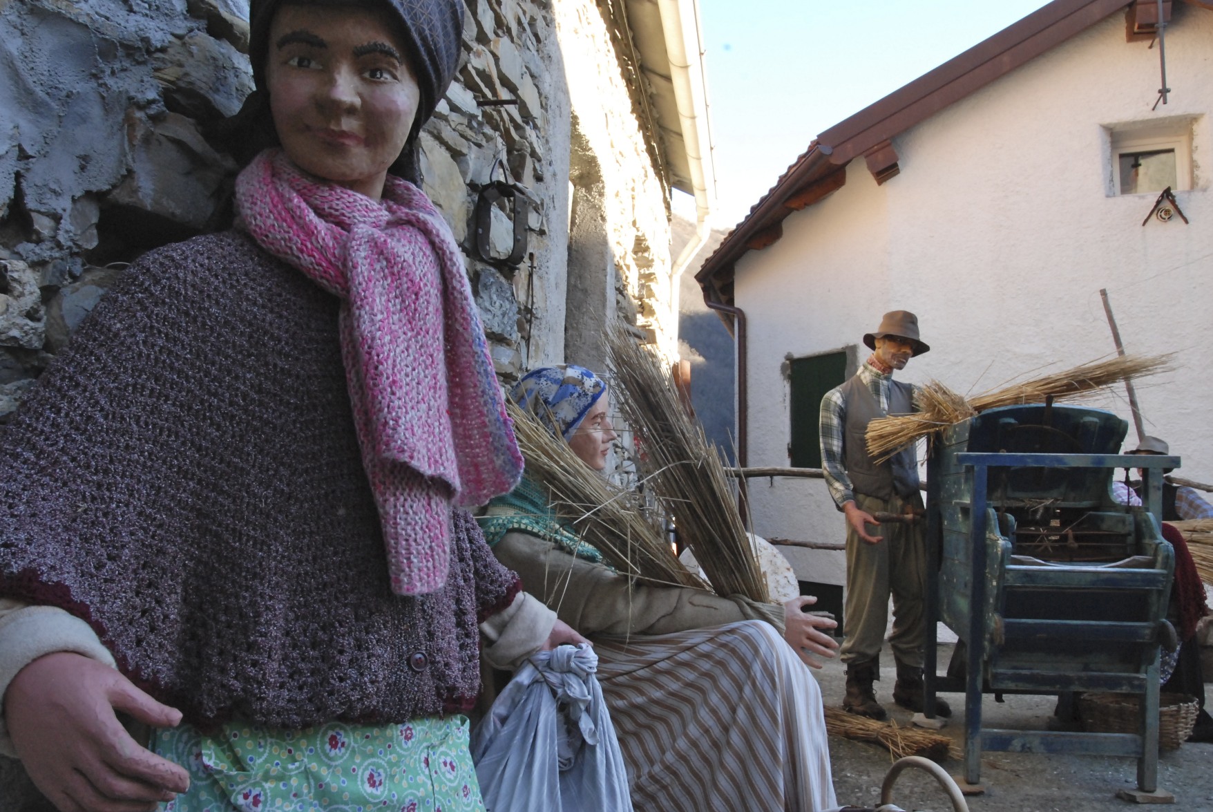 Die letzten wackeren Bewohner holen sich ihre Ahnen zurück ins Dorf, lassen sie Körbe flechten und Kekse backen, Wäsche aufhängen und in der Kneipe hocken, während die Kinder zur Schule gehen und Boccia spielen. So wie das Leben vor gut hundert Jahren in den ligurischen Bergen eben war. Und natürlich, weil Weihnachten ist, gibt es auch eine Krippe mit Christkind. Merkwürdig echt muten diese Gestalten an, die vor gut 100 Jahren Pentema bevölkerten. Viele – richtig echte – Menschen, die sich in ebenso echten Autos nach Pentema hinunter geschlängelt haben, besichtigen um die Jahreswende diese Szenerie – aber was ist eigentlich wahr, was falsch?