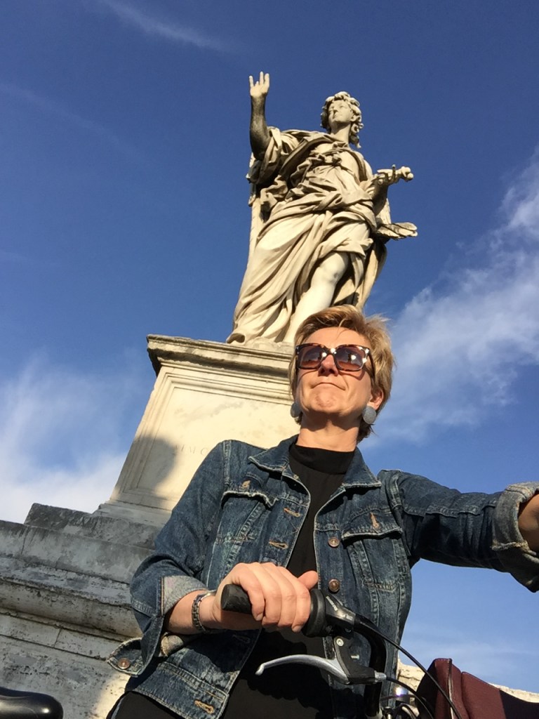 Hier bin ich mit Fahrrad in Rom auf Recherche für „Signora Sommer Tanzt Den Blues“. Aber wo genau stehe ich und was sehe ich unter mir? Na? Wenn ihr „Signora Sommer …“ gelesen habt oder mal in Rom ward, solltet ihr’s rauskriegen. Falls nicht, tja, dann wird‘s Zeit – für das eine wie das andere.